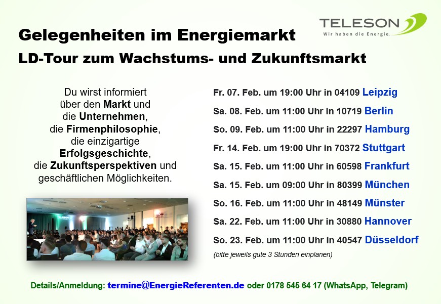 Teilnahmebedingungen: Du bist neue VP mit einer eigenen VP-Nr. in unserer Landesdirektion A. Trapp und optional bereits an einer EnergieGrundSchulung (EGS) teilgenommen.